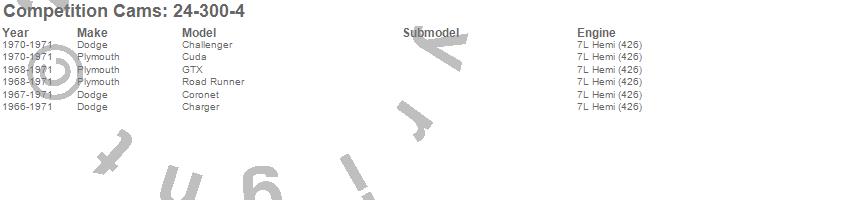 Below is an abbreviated list of applications for the Drag Race Camshaft.
