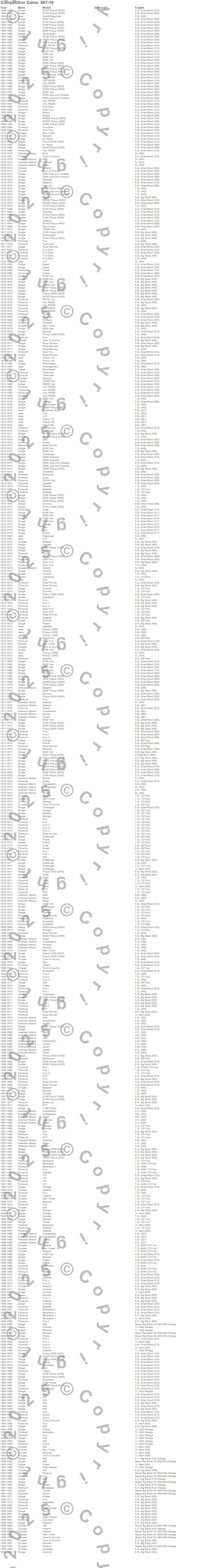 - Competition Cams