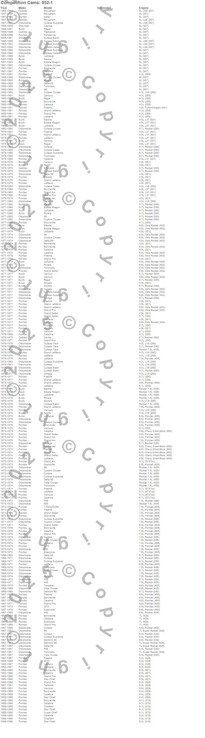 442, 98, Apollo, Bel Air, Bonneville, Brougham, Camaro, Caprice, Catalina, Catalina Ventura, Centurion, Century, Chevelle, Chieftain, Corvette, Custom Cruiser, Cutlass, Cutlass Calais, Cutlass Cruiser, Cutlass Salon