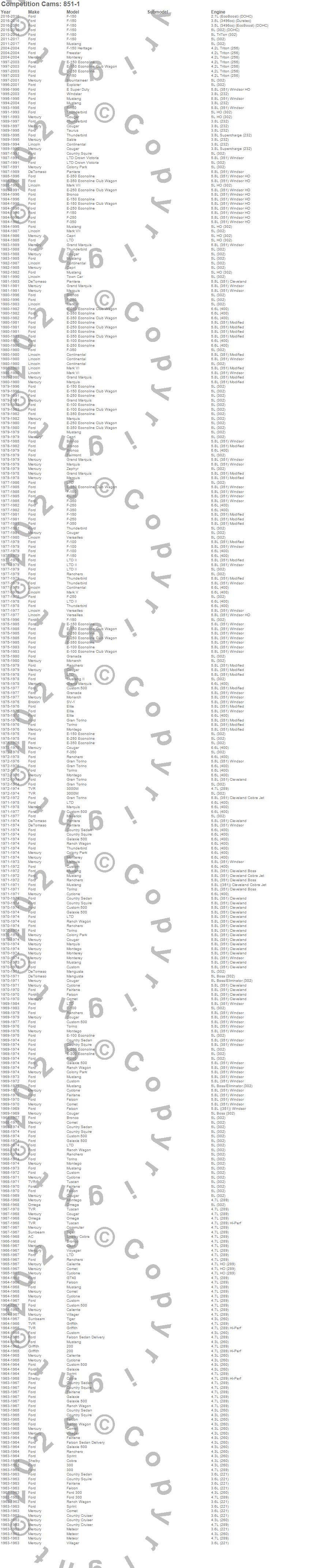 Bronco, Caliente, Capri, Club Cargo, Colony Park, Comet, Commuter, Continental, Cougar, Country Cruiser, Country Sedan, Country Squire, Custom, Custom 500, Cyclone, E-100 Econoline, E-100 Econoline Club Wagon, E-150 Econoline, E-150 Econoline Club Wagon, E-200 Econoline