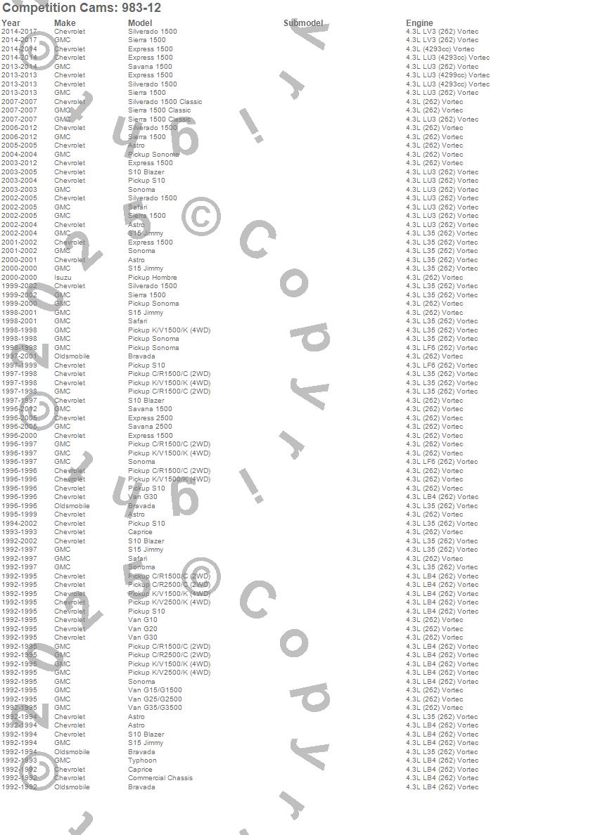 Astro, Bravada, C1500 Pickup, C2500 Pickup, Caprice, Express 1500, Express 2500, G10 Van, G20 Van, G30 Van, K1500 Pickup, K2500 Pickup, S10 Blazer, S10 Blazer (Canadian), S10 Pickup, Silverado 1500, Chevrolet, Oldsmobile, 2003, 2002