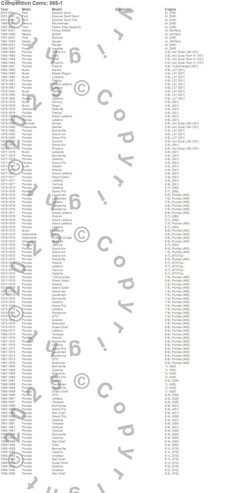 6000, Bonneville, Catalina, Catalina Ventura, Century, Delta 88, Electra, Estate Wagon, Executive, Fiero, Firebird, Firebird Trans Am, Grand Am, Grand LeMans, Grand Prix, Grand Safari, Grandville, GTO, LeMans, LeSabre