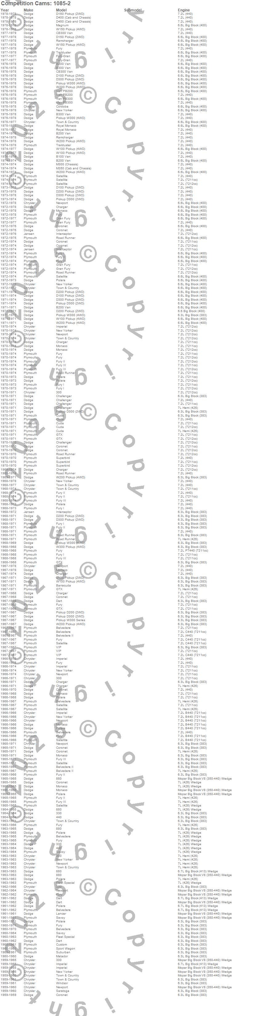300, 330, 440, 880, B100 Van, B200 Van, B300 Van, Barracuda, Belvedere, Belvedere II, CB300 Van, Challenger, Charger, Cordoba, Coronet, Cuda, Custom, D100 Pickup, D150 Pickup, D200 Pickup