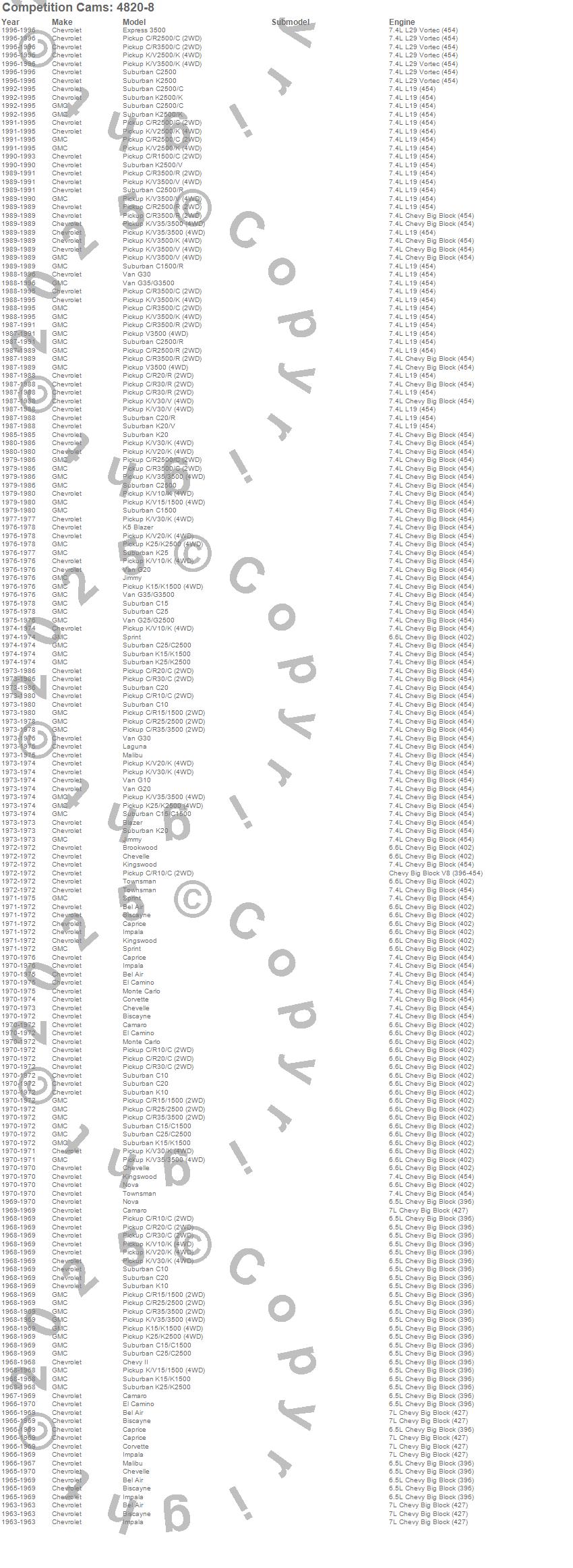 Below is an abbreviated list of applications for the Big Block Chevy Guide Plates.