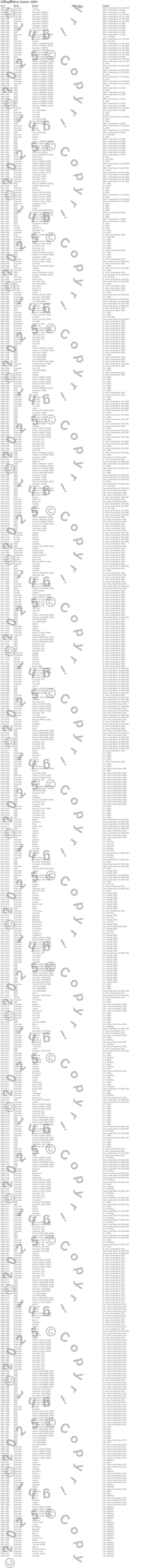 Below is an abbreviated list of applications for the Small Block Chevy Stud Girdle.