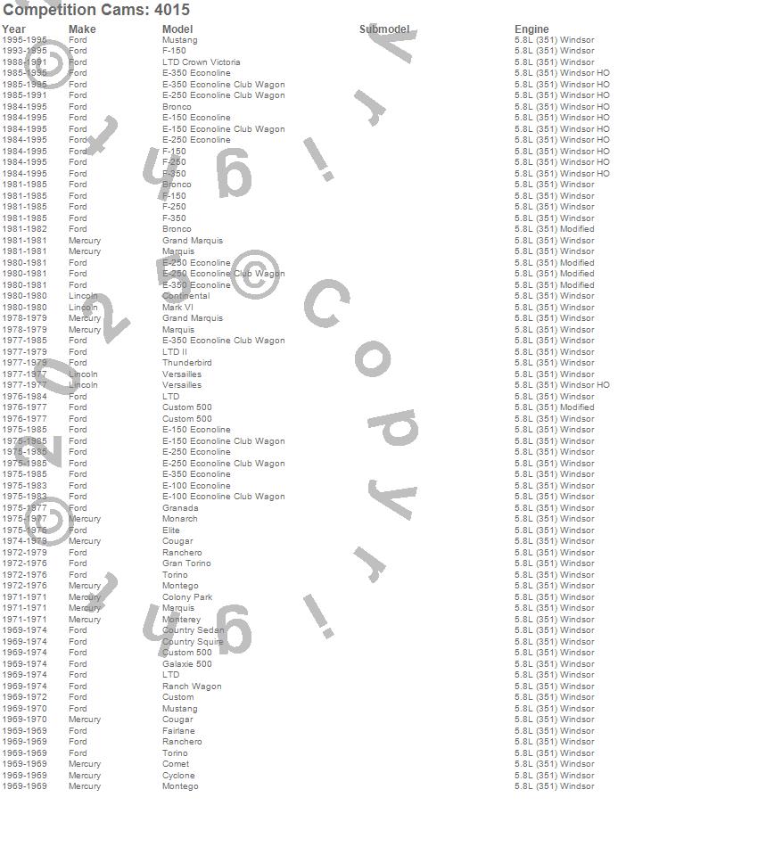 Below is an abbreviated list of applications for the Ford Stud Girdle.