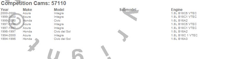 Below is an abbreviated list of applications for the XR Series Camshaft.