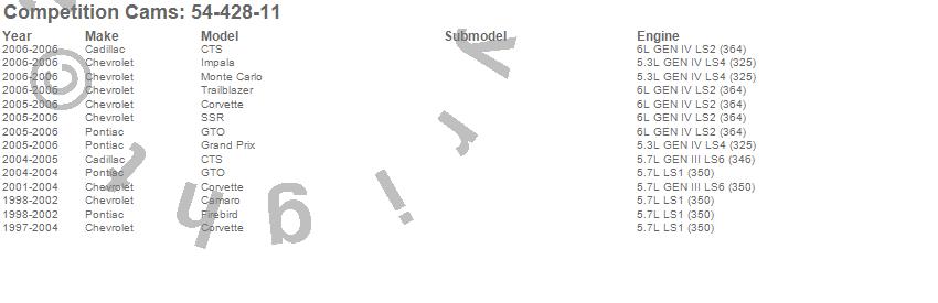 Below is an abbreviated list of applications for the Xtreme RPM High Lift Camshaft.