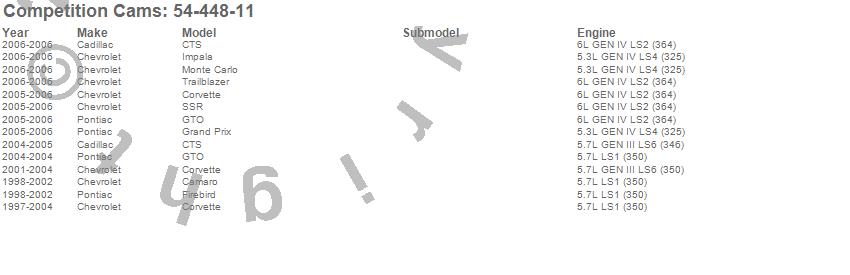 Below is an abbreviated list of applications for the Xtreme XE-R Camshaft.