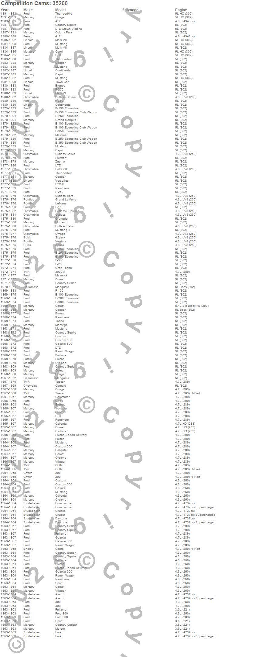 200, 3000M, 412, 412i, Apollo, Avanti, Bronco, Caliente, Camaro, Capri, Club Cargo, Cobra, Colony Park, Comet, Commander, Commuter, Continental, Cougar, Country Cruiser, Country Sedan