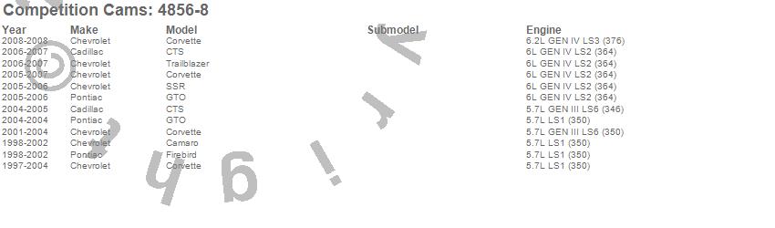 Below is an abbreviated list of applications for the GM Gen III LS1/LS2/LS6 Guide Plate.
