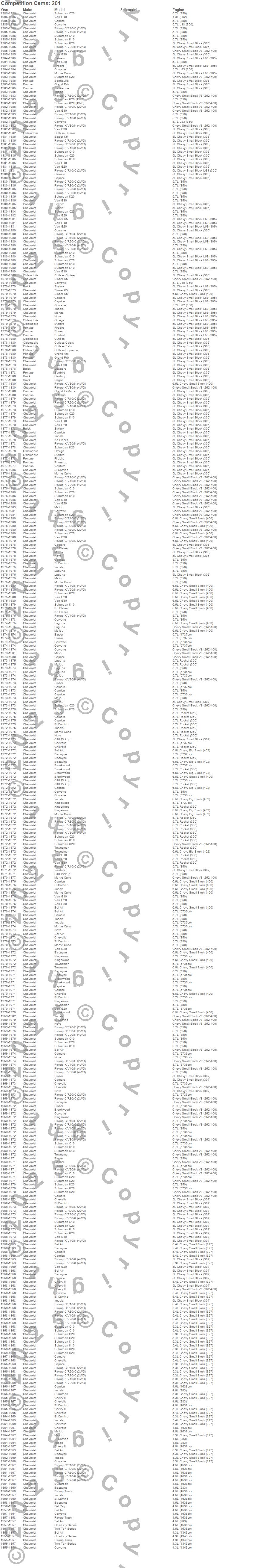 Bel Air, Biscayne, Blazer, Blazer K5, Bonneville, Brookwood, C10 Pickup, C10 Suburban, C20 Pickup, C20 Suburban, C30 Pickup, Camaro, Caprice, Century, Chevelle, Chevy II, Corvette, Cutlass, Cutlass Calais, Cutlass Cruiser