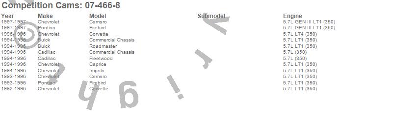 Below is an abbreviated list of applications for the Xtreme Fuel Injection Camshaft.