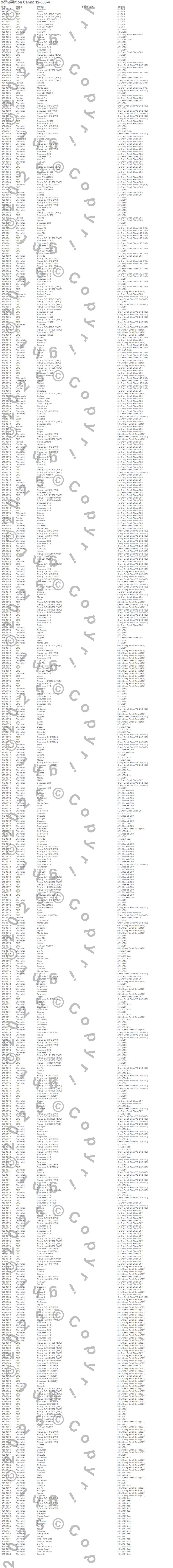 Below is an abbreviated list of applications for the Xtreme Fuel Injection Camshaft.