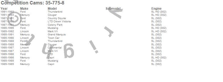 Below is an abbreviated list of applications for the Xtreme Fuel Injection Camshaft.