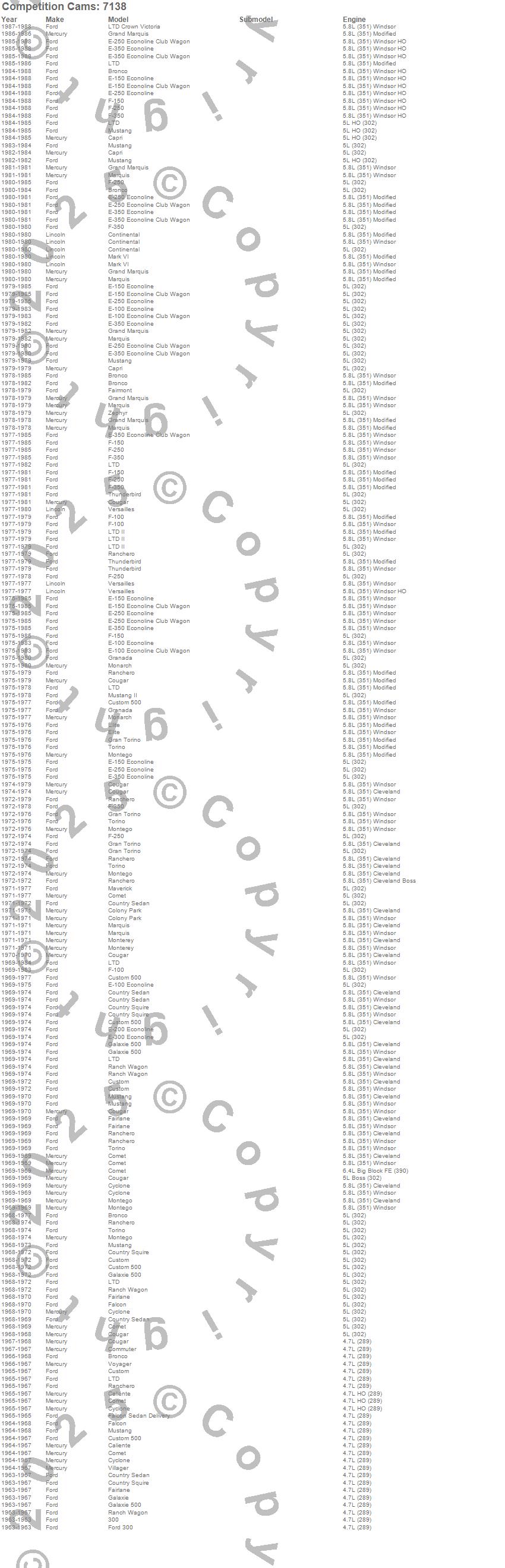 Bronco, Caliente, Capri, Club Cargo, Colony Park, Comet, Commuter, Continental, Cougar, Country Sedan, Country Squire, Custom, Custom 500, Cyclone, E-100 Econoline, E-100 Econoline Club Wagon, E-150 Econoline, E-150 Econoline Club Wagon, E-200 Econoline, E-250 Econoline
