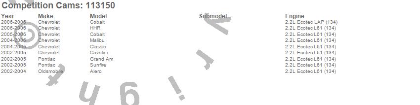 Below is an abbreviated list of applications for the Xtreme Energy Camshaft.