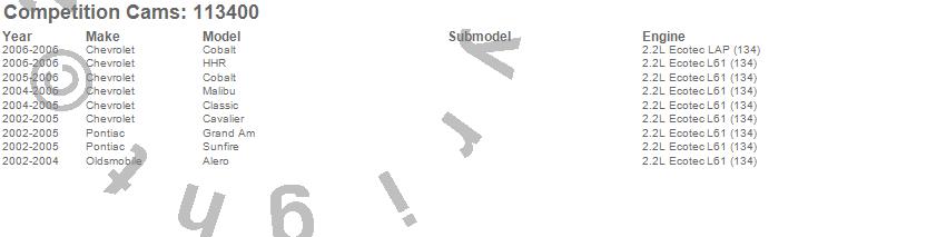 Below is an abbreviated list of applications for the Xtreme Energy Camshaft.