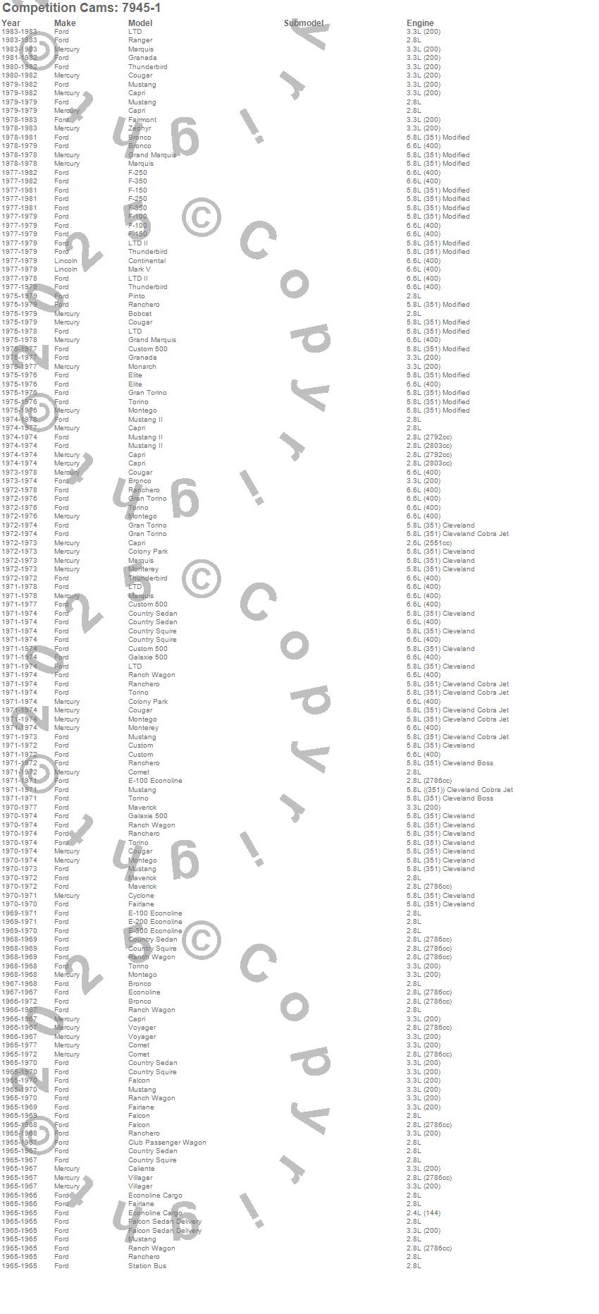 Bobcat, Bronco, Capri, Colony Park, Continental, Cougar, Country Sedan, Country Squire, Courier, Custom, Custom 500, Cyclone, Elite, F-100, F-150, F-250, F-350, Fairlane, Fairmont, Galaxie 500