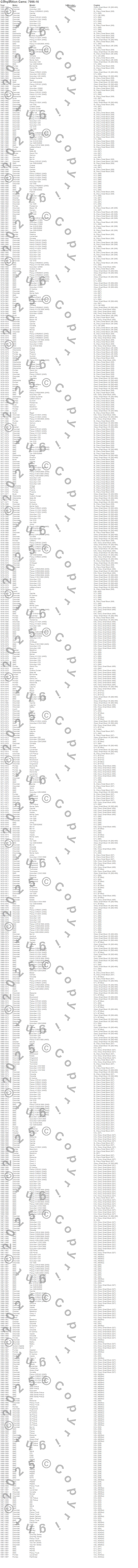 Bel Air, Biscayne, Blazer, Blazer K5, Bonneville, Brookwood, C10 Pickup, C10 Suburban, C1500 Pickup, C1500 Suburban, C20 Pickup, C20 Suburban, C2500 Pickup, C2500 Suburban, C30 Pickup, C3500 Pickup, Camaro, Caprice, Century, Chevelle