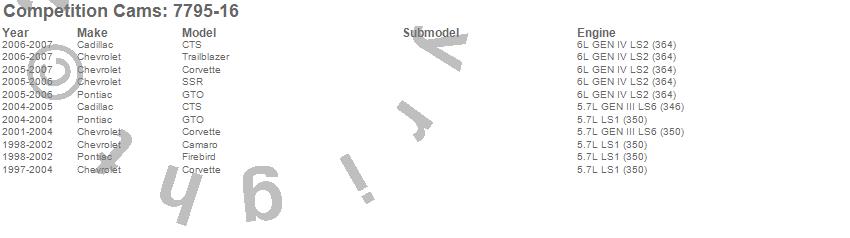 Below is an abbreviated list of applications for the Hi-Tech Push Rod.