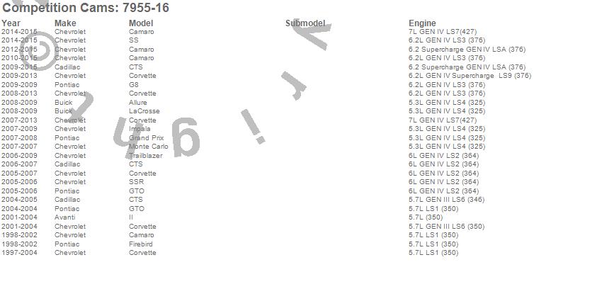 Below is an abbreviated list of applications for the Hi-Tech Push Rod.