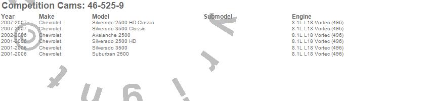 Below is an abbreviated list of applications for the Tri-Power Xtreme Camshaft.