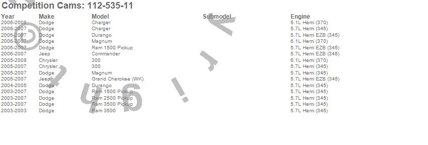 Below is an abbreviated list of applications for the Tri-Power Xtreme Camshaft.
