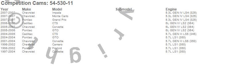 Below is an abbreviated list of applications for the Tri-Power Xtreme Camshaft.