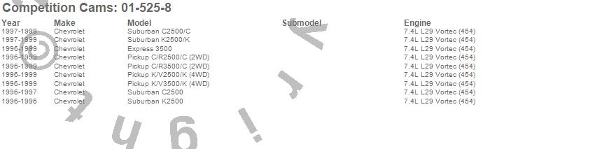 Below is an abbreviated list of applications for the Tri-Power Xtreme Camshaft.