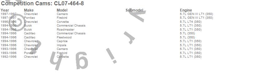 Below is an abbreviated list of applications for the Xtreme Fuel Injection Camshaft/Lifter Kit.