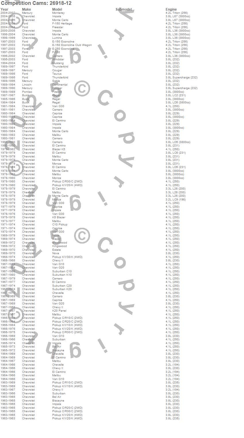 Continental, Cougar, E-150 Econoline, E-150 Econoline Club Wagon, E-250 Econoline, F-150, F-150 Heritage, Firebird, Freestar, Monterey, Mustang, Regal, Sable, Taurus, Thunderbird, Windstar, Buick, Ford, Lincoln, Mercury