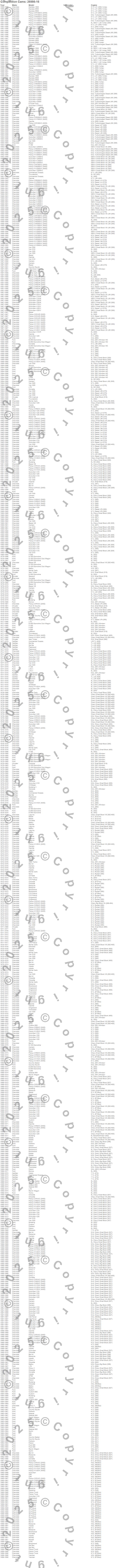 200, 3000M, 330, 412, 412i, 440, 880, A100 Van, Apollo, Aspen, Avanti, B100 Van, B150 Van, B200 Van, B250 Van, B300 Van, B350 Van, Barracuda, Bel Air, Belvedere