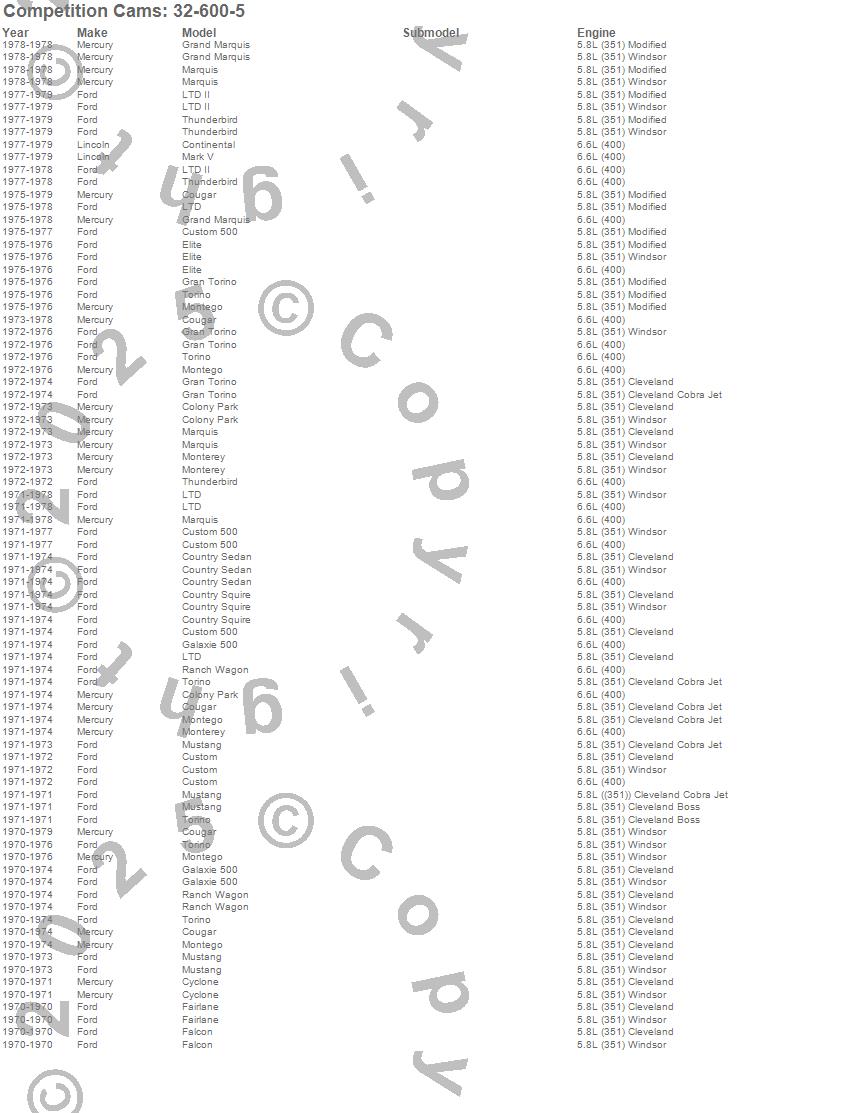 Below is an abbreviated list of applications for the Thumpr Camshaft.