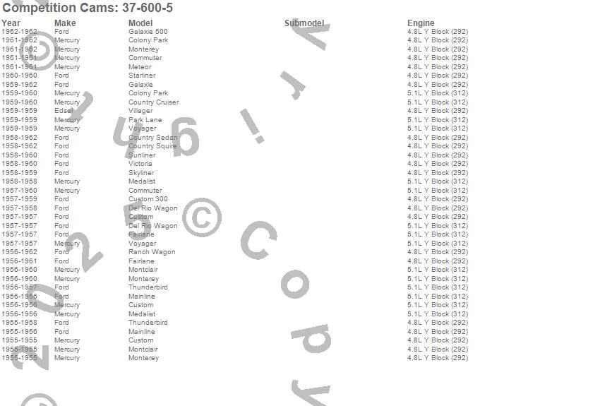 Below is an abbreviated list of applications for the Thumpr Camshaft.