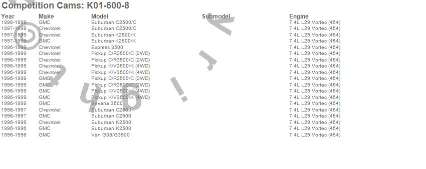 Below is an abbreviated list of applications for the Thumpr Camshaft Kit.