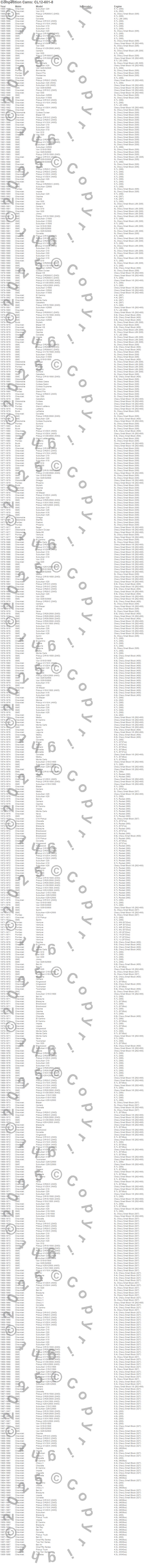 Below is an abbreviated list of applications for the Mutha Thumpr Camshaft/Lifter Kit.