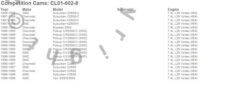 Below is an abbreviated list of applications for the Big Mutha Thumpr Camshaft/Lifter Kit.