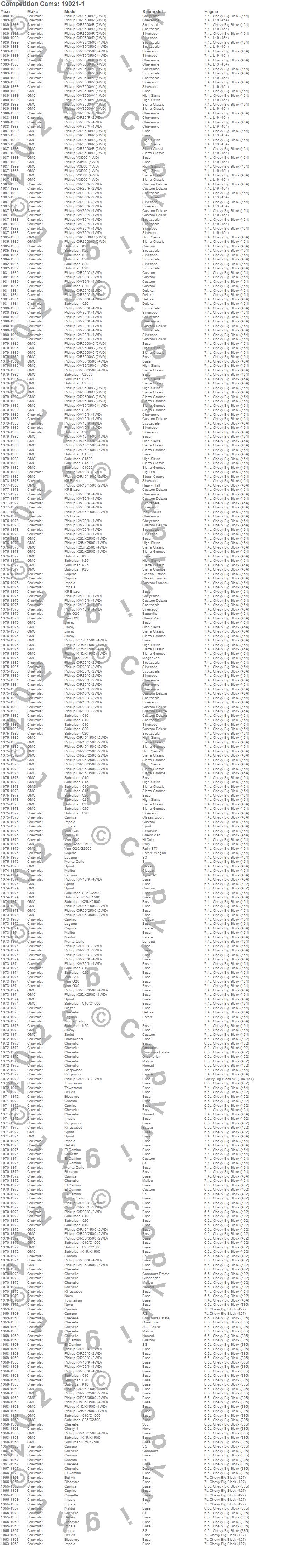 Bel Air, Biscayne, Blazer, Blazer K5, Brookwood, C10 Pickup, C10 Suburban, C15 Suburban, C15/C1500 Suburban, C1500 Pickup, C1500 Suburban, C20 Pickup, C20 Suburban, C25 Suburban, C25/C2500 Pickup, C25/C2500 Suburban, C2500 Pickup, C2500 Suburban, C30 Pickup, C35/C3500 Pickup