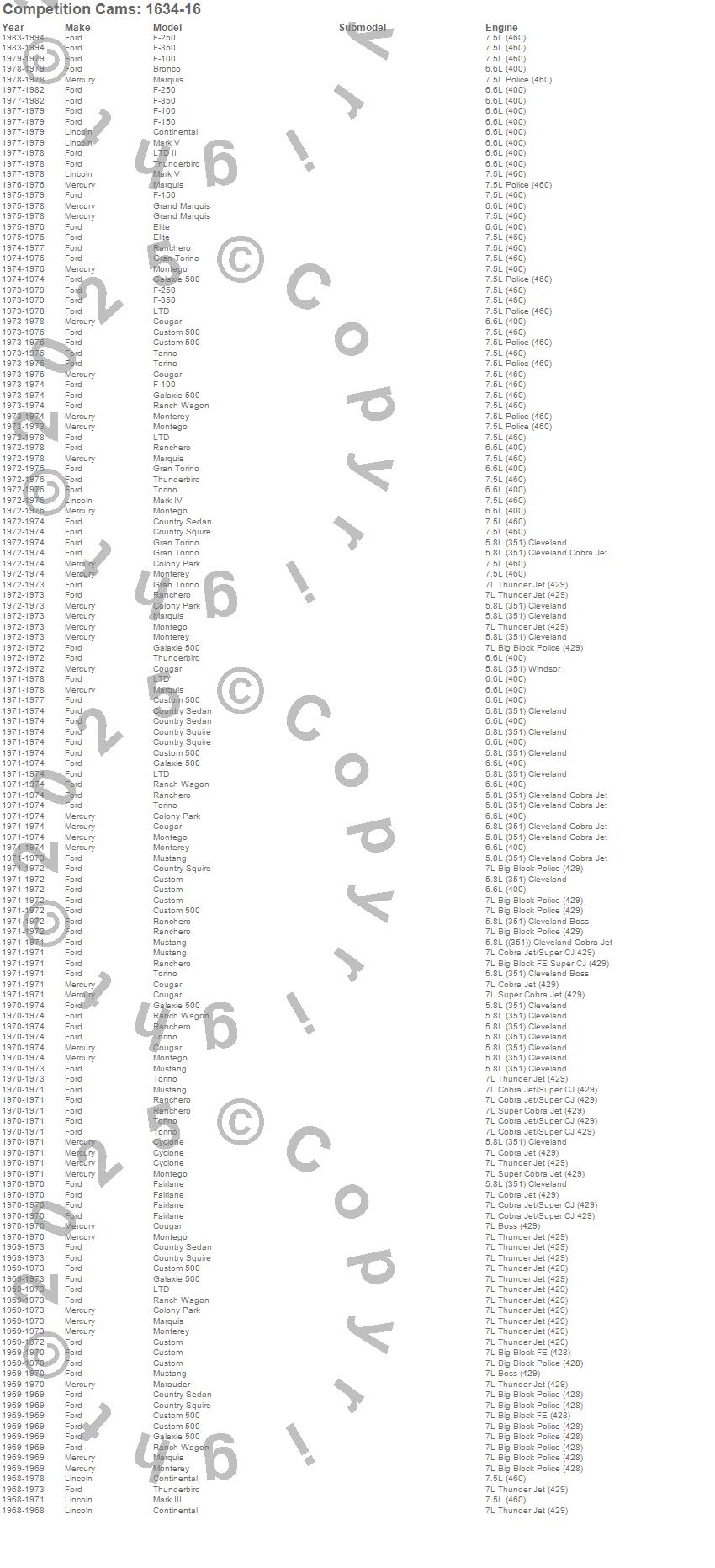 Bronco, Colony Park, Continental, Cougar, Country Sedan, Country Squire, Custom, Custom 500, Cyclone, Elite, F-100, F-150, F-250, F-350, Fairlane, Galaxie 500, Gran Torino, Grand Marquis, LTD, LTD II