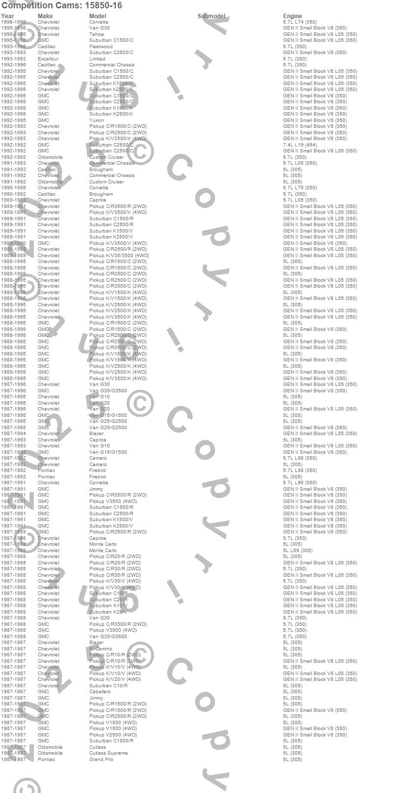 Below is an abbreviated list of applications for the Short Travel Race Hydraulic Roller Lifter.