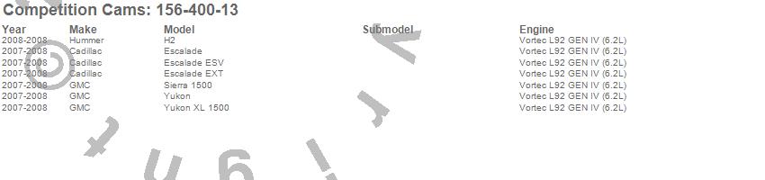 Below is an abbreviated list of applications for the Xtreme Fuel Injection SPR Camshaft.