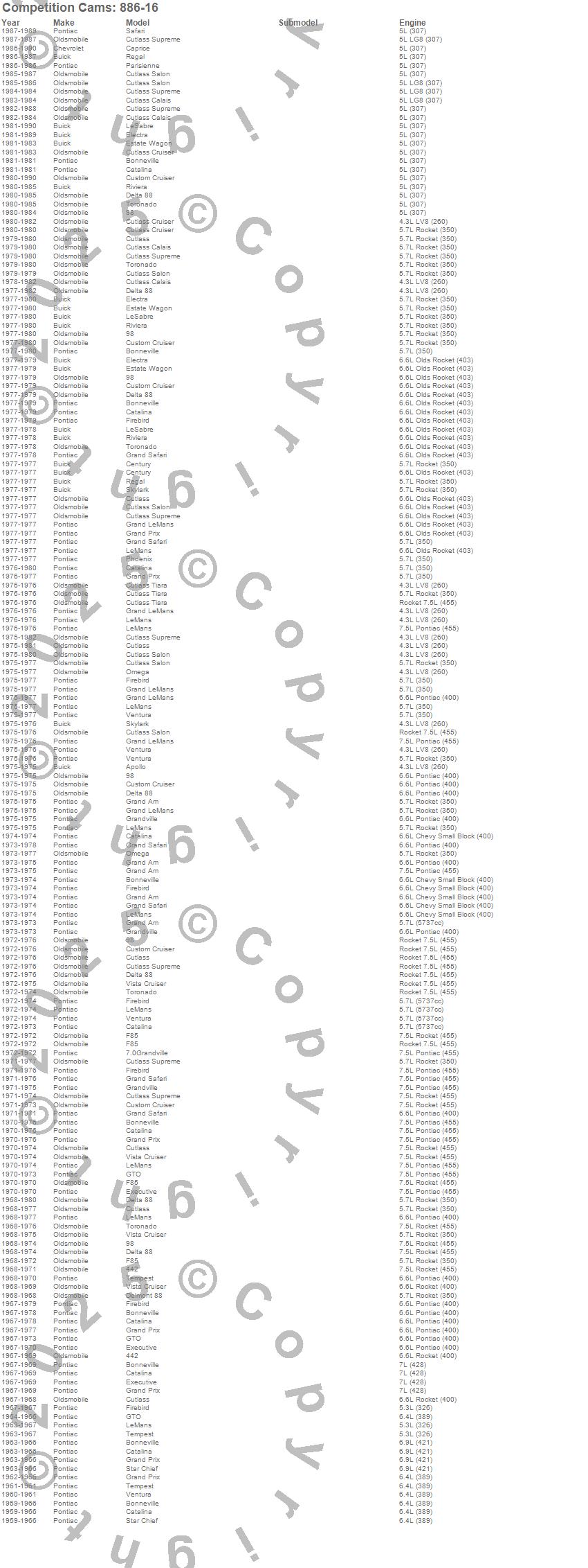 Below is an abbreviated list of applications for the Hi-Tech Hydraulic Lifter Set.