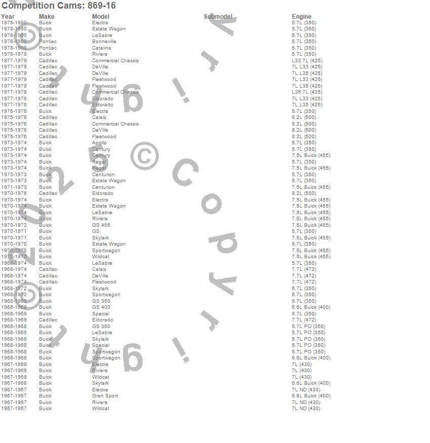 Apollo, Bonneville, Calais, Catalina, Centurion, Century, Chevelle, Commercial Chassis, Corvette, DeVille, Eldorado, Electra, Estate Wagon, Fleetwood, Gran Sport, GS, GS 350, GS 400, GS 455, Impala
