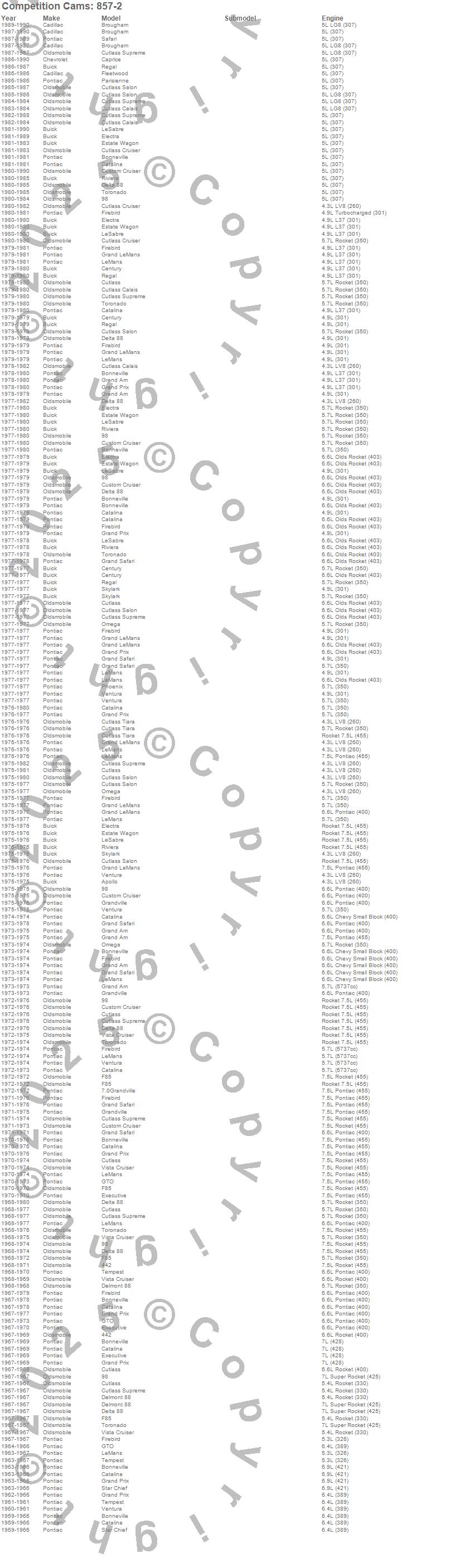 Below is an abbreviated list of applications for the High Energy Hydraulic Lifter Set.