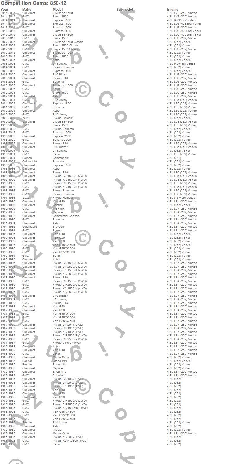 Below is an abbreviated list of applications for the High Energy Hydraulic Lifter Set.