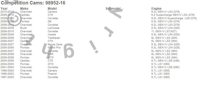 Below is an abbreviated list of applications for the Elite Race Solid Roller Lifter Kit.