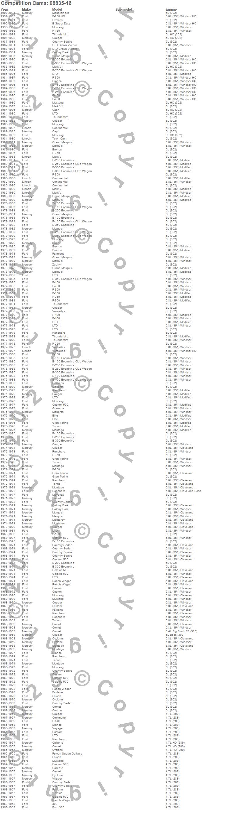 Bronco, Caliente, Capri, Club Cargo, Colony Park, Comet, Commuter, Continental, Cougar, Country Sedan, Country Squire, Custom, Custom 500, Cyclone, E Super Duty, E-100 Econoline, E-100 Econoline Club Wagon, E-150 Econoline, E-150 Econoline Club Wagon, E-200 Econoline
