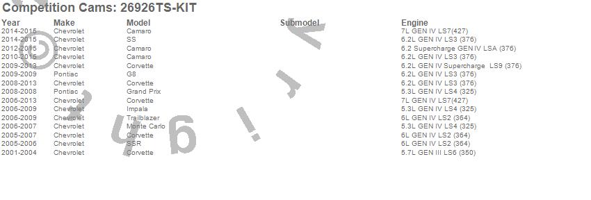 Below is an abbreviated list of applications for the LS Engine Dual Valve Spring Kit.