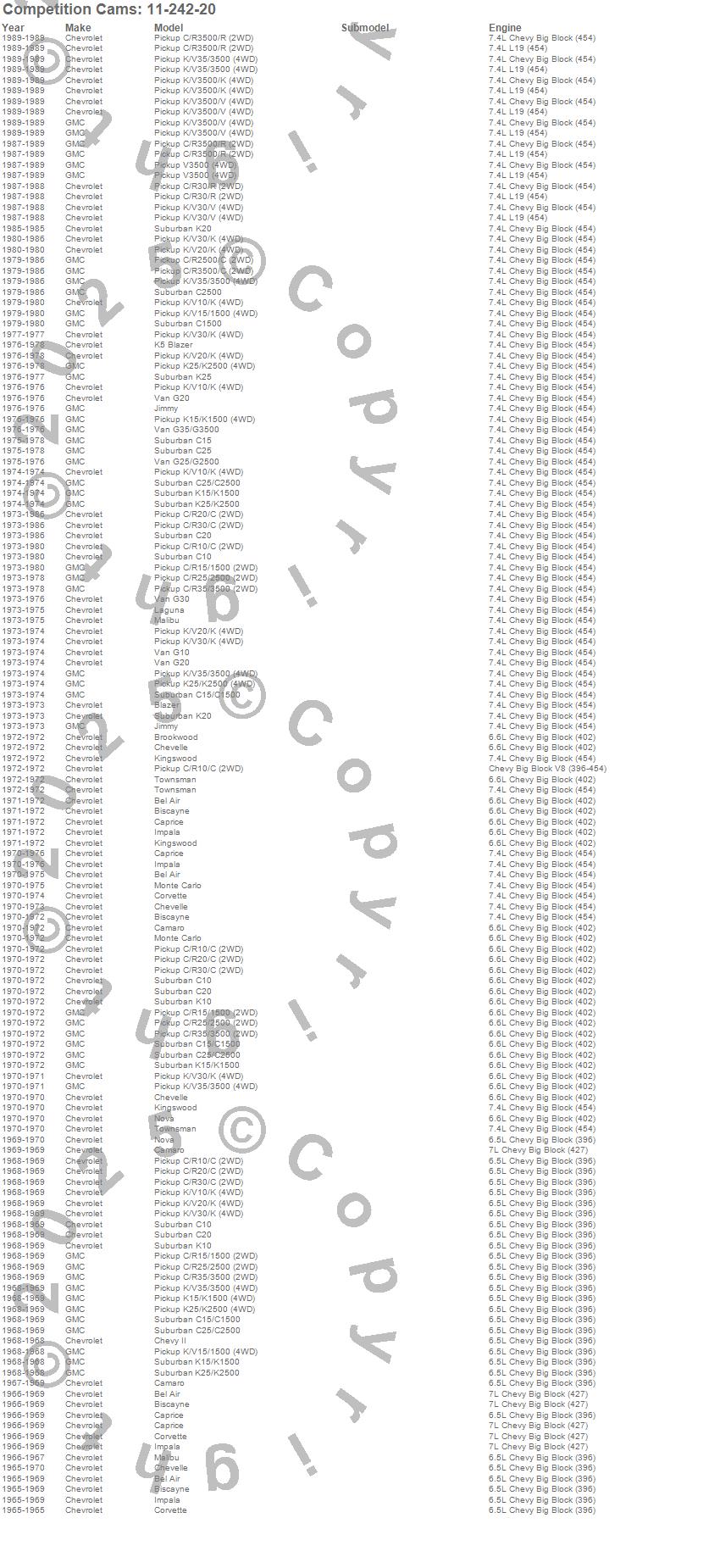 Below is an abbreviated list of applications for the Nitrided Xtreme Energy Camshaft.